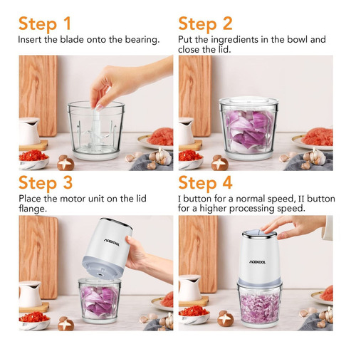 Acekool – Mini Procesador De Alimentos Con Cuenco De Vidrio