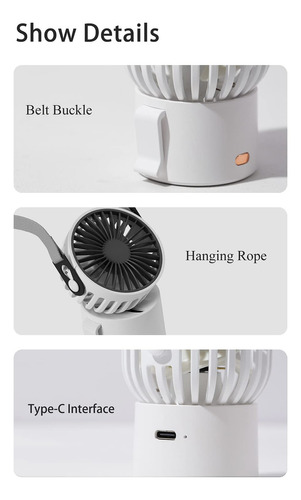 3 velocidades de viento se pueden ajustar a voluntad para satisfacer cualquier necesidad de ti. Ventilador recargable USB, conveniente para cargar a través de computadora, cargador de teléfono ular, banco de energía, portátiles, etc. La batería integrada de mAh proporciona una duración de 1,5 a 5,5 horas de trabajo depende de diferentes velocidades.