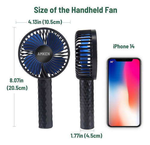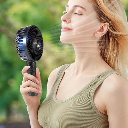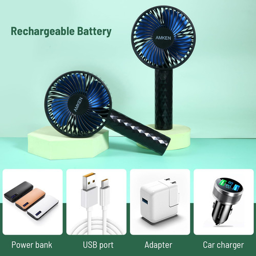El ventilador personal utiliza batería recargable mejorada de mAh. Este ventilador portátil de mano se carga con dispositivos USB como bancos de energía, computadoras, computadoras portátiles y cargadores USB, que pueden seguir funcionando al conectarse con una fuente de alimentación USB.