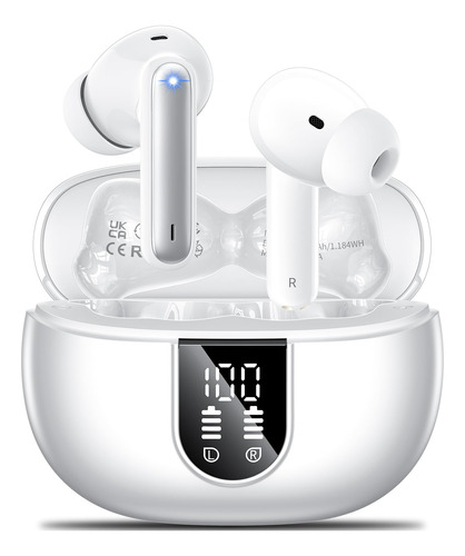 – Pantalla LED y 42 horas de reproducción: diseño de pantalla de batería de auriculares inalámbricos LED separados, puedes ver claramente el nivel de carga de cada auricular y estuche de carga. Auriculares Bluetooth Un estuche de carga con cable de carga USB-C, solo tarda 1,5 horas en cargar completamente la funda recargable con el cable de carga. Los auriculares ofrecen de 6 a 7 horas de música, el estuche de carga portátil puede proporcionarte 42 horas adicionales de reproducción.