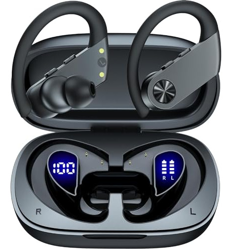 – Pantalla digital LED dual: los auriculares Bluetooth con pantalla LED muestran la potencia restante del estuche de carga por el número izquierdo y el estado de carga de los auriculares Bluetooth por la barra de luz LED derecha, que puede reflejar visualmente la energía en tiempo real para garantizar una carga oportuna. El estuche de los auriculares inalámbricos bluetooth presenta sus niveles de batería de 1 a 100. Una vez que los auriculares inalámbricos se vuelvan a colocar en el estuche de carga, que comenzará a cargarse, y dejará de parpadear hasta que esté completamente cargado.