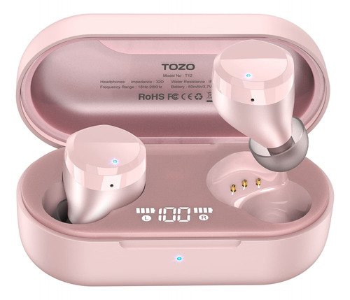 Auriculares Bluetooth TOZO T12 Inalámbricos Rosa Oro, Cali