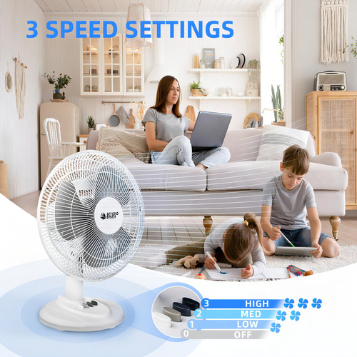 BEYOND BREEZE Ventilador de mesa oscilante, silencioso ventilador de inclinación ajustable de 3 velocidades de 12 pulgadas con parrilla de seguridad, ideal para el hogar, oficina, dormitorio.