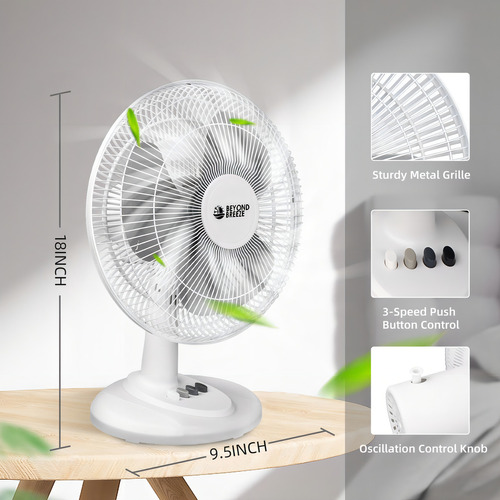 El ventilador de mesa oscilante BEYOND BREEZE de 12 pulgadas está diseñado para satisfacer cómodamente la mayoría de tus necesidades de refrigeración durante los meses de verano.