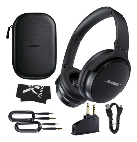 Lleva tu experiencia en vuelo a nuevas alturas con el Bundle de Viaje de Auriculares con Cancelación de Ruido Bose QuietComfort 45, especialmente seleccionado para satisfacer las necesidades de los viajeros frecuentes y los viajeros de larga distancia. Este combo de 4 piezas está diseñado para ofrecer una experiencia sonora inmersiva superior y libre de distracciones, sumergiendo a los oyentes en un paisaje sonoro de alta fidelidad y total silencio cuando más se necesita.