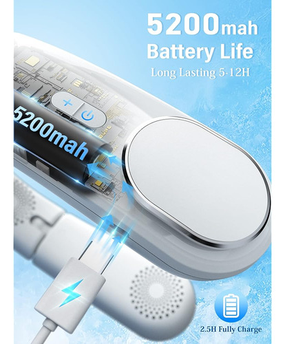 2. Batería de larga duración: disfruta de hasta 12 horas de refrigeración con la impresionante batería recargable de iones de litio de mAh. No hay necesidad de preocuparse por la energía durante tus aventuras, y se incluye un cable de carga USBC para tu comodidad.
