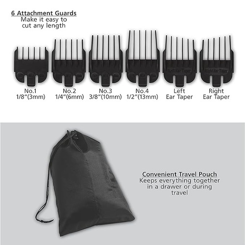 Accesorios incluidos: 1 aceite lubricante, 1 manual, 1 cepillo limpiador, 1 funda, 2 peines, 1 protector de cuchillas, Manual