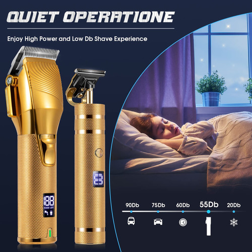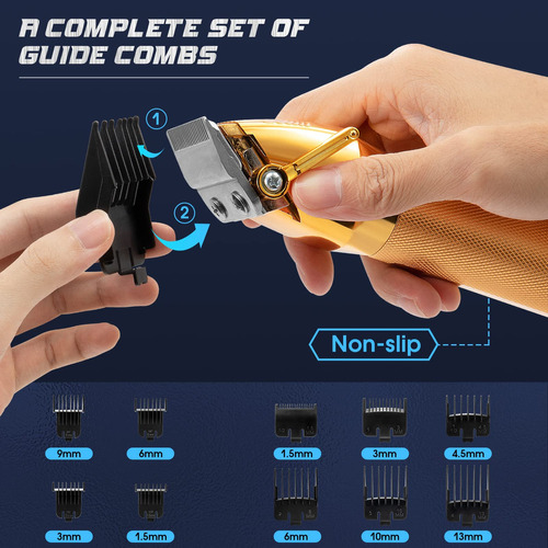 Ambos, la cortadora y la recortadora, están equipadas con motores de núcleo de cobre de alto rendimiento, lo que hace que la cortadora de pelo sea más rápida y eficiente. La cortadora grande es adecuada para cabello grueso y húmedo, sin tirones, sin pegado y proporciona una experiencia de corte más cómoda. Las cortapelos de todos los tamaños están equipadas con la última tecnología de reducción de ruido para que el ruido del cortapelos cuando se ejecuta sea inferior a 55 decibelios.