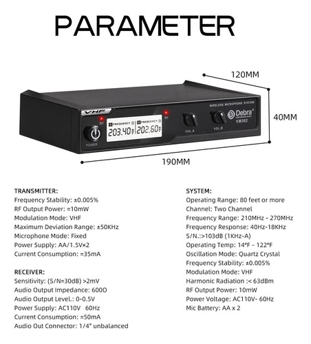 D Debra Audio Vm302 Vhf Sistema De Micrófono Inalámbrico . Color Negro