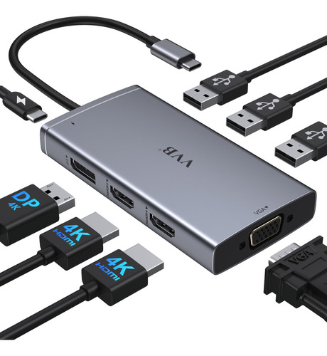 Docking Station USB C 8 en 1 Doble HDMI 4K para Dell/HP/Len