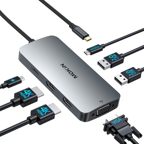 Estación de Acoplamiento USB C Dual, Adaptador 7 en 1, 2 H