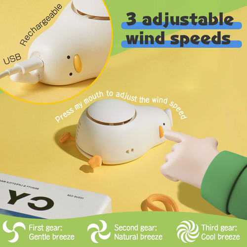 Famiduo Ventilador De Cuello Portátil Con Cordón, Pato Pl