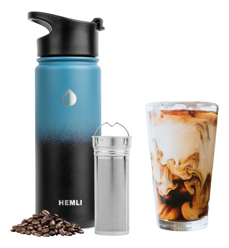 Hemli Cafetera De Botella De Preparación Fría, 18 Onzas, . Color Azul Negro