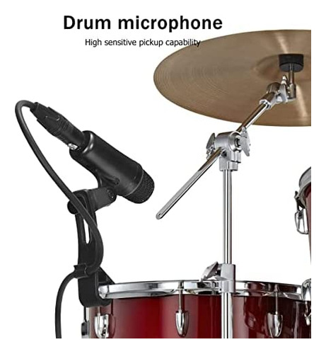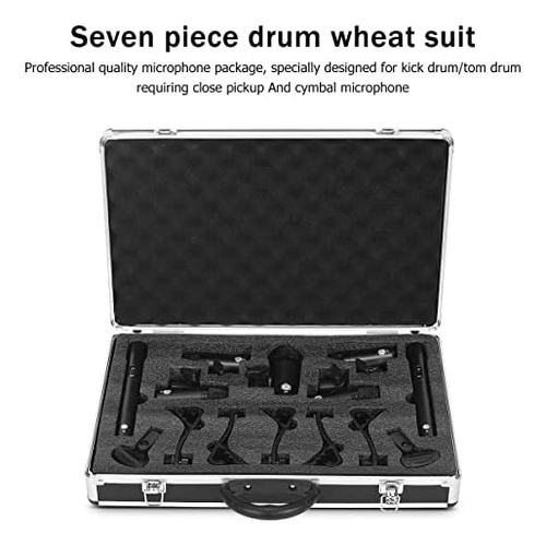 El kit incluye 1 micrófono de batería, 4 micrófonos de batería pequeños, 2 micrófonos de condensador con soporte, 4 clips de rosca e insertos.