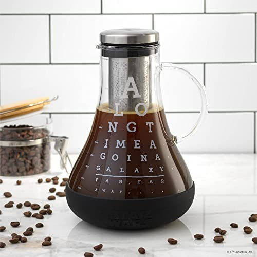 JoyJolt Star Wars Cold Brew Maker. Café Cold Brew Caf, The Jedi Way Disponible en 1 L 32 onzas o 1,5 L 50 onzas Cafetera de goteo para verter sobre Cafeteras de hielo y cafetera de té helado. Sello hermético que mantiene el café frío fresco Cafetera de prensa fría con protección antideslizante extraíble Jarra de café de vidrio borosilicato resistente al calor Sin piezas de plástico Filtro de cerveza fría de acero inoxidable, máquina de café helado de vidrio. Apto para congelador, apto para lavaplatos, jarra de café frío en caja de Star Wars para hombres y mujeres. Este juego de cafetera Star Wars es parte de la colección JoyJolt Star Wars Glassware de tazas de Star Wars, tazas de café, tazas de vidrio y accesorios de café y té de Star Wars. Con una amplia gama de accesorios de café contemporáneos, con licencia de Disney Glassware y Star Wars Drinkware. Hacer o no, no hay intento.