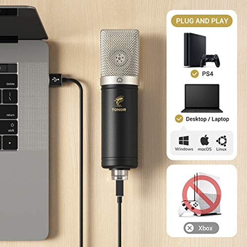 Micrófono De Condensador 192khz / 24bit, Tonor Usb Cardioide
