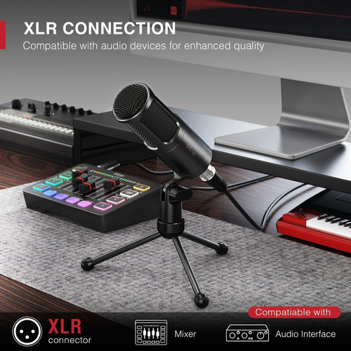 El micrófono dinámico FIFINE XLR, modelo K669D, es un producto de alta calidad diseñado específicamente para podcast y vocales. Este micrófono, producido por la reconocida marca FIFINE, es conocido por su excepcional calidad de sonido. Su diseño elegante y moderno, junto con su robusta construcción, lo hacen ideal para uso profesional y personal.