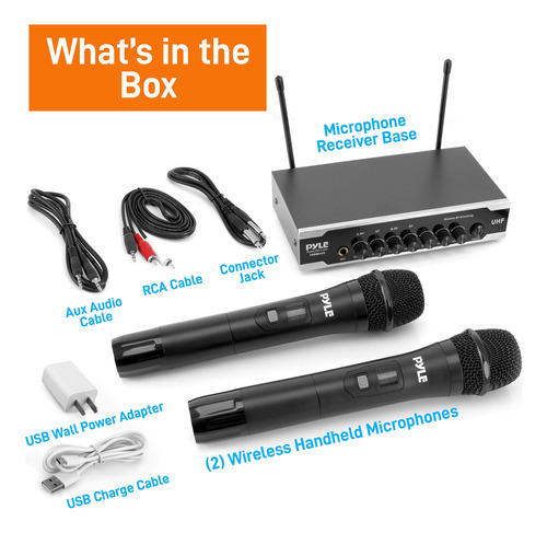 Micrófono Inalámbrico Marca Pyle, Dual /karaoke /negro