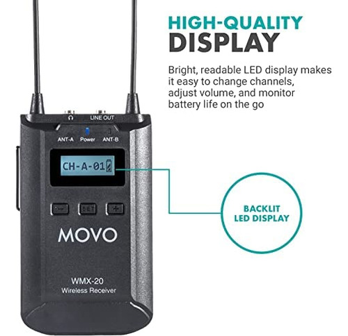Micrófono Movo Wmx20-rx+txlr Color Negro.
