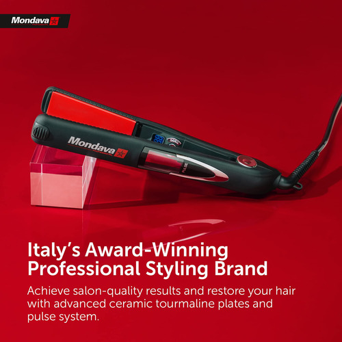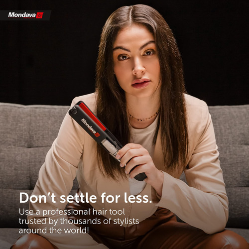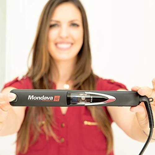 Mondava es una marca profesional de peinado muy reconocida y galardonada, utilizada por profesionales de salón de belleza de todo el mundo. Este alisador de cabello proporciona una distribución constante del calor de la temperatura para obtener resultados hermosos y rápidos. Es seguro y fácil de usar en todo tipo de cabello, incluyendo: cabello delicado, seco, fino, grueso, liso, ondulado, rizado y rizado.
