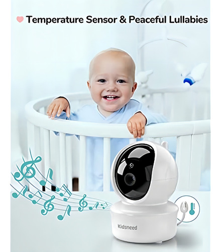 El monitor para bebés Kidsneed SM935A también cuenta con 4 canciones de cuna relajantes que ayudarán a dormir a su pequeño. El sensor de temperatura incorporado en la cámara del bebé enviará una alerta a la unidad de padres, permitiéndole saber cuándo es el momento de ajustar la temperatura de la habitación.