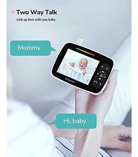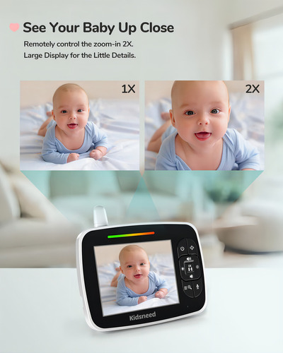El Monitor Para Bebés Kidsneed SM935A es un dispositivo de alta tecnología diseñado para ofrecer un control de visualización completo. Este monitor de bebé con video cuenta con funciones de cámara como Pan-Tilt-Zoom, permitiendo una vista clara de su bebé desde cualquier ángulo o de cerca.