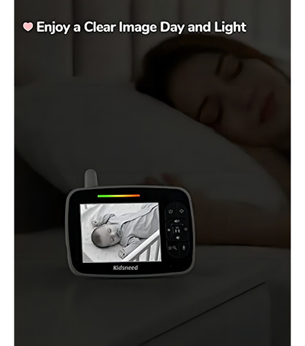 El dispositivo cuenta con un modo de visión nocturna automática con imágenes infrarrojas claras en escala de grises, permitiéndole verificar la situación de su bebé en la oscuridad. Además, el monitor de bebé Kidsneed SM935A cuenta con una función de conversación bidireccional y monitoreo de temperatura. La cámara del monitor de bebé con audio bidireccional cristalino permite una conversación en ambos extremos tan clara como si estuviera en la misma habitación con su pequeño.