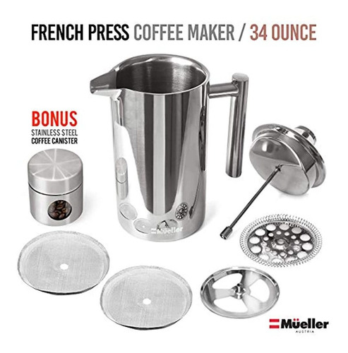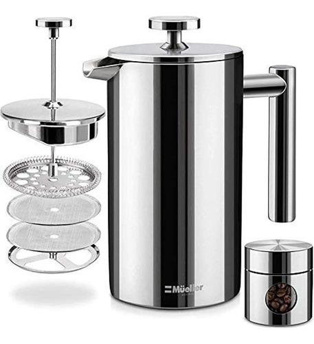 Mueller French Press Cafetera De Acero Inoxidable 310 Con Do Color Silver