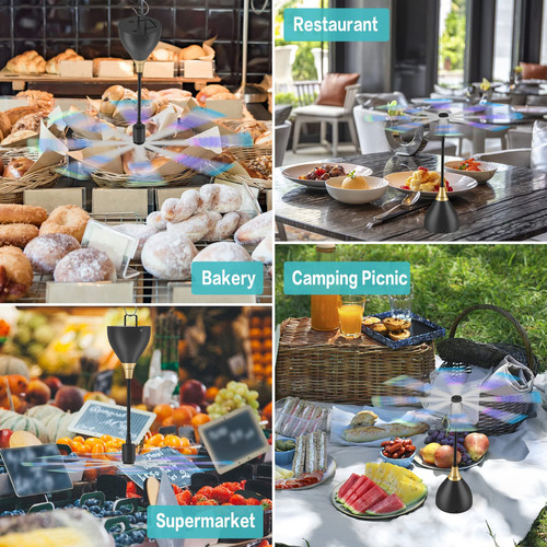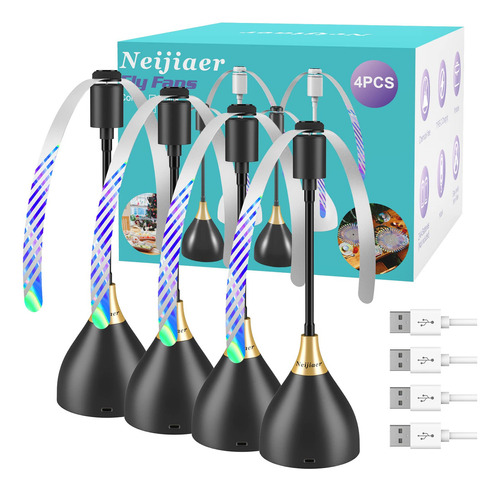 Neijiaer Ventiladores para mesas, práctico ventilador repelente de moscas con cuchillas suaves, alimentado por USB o baterías, ventilador de mosca insonoro y portátil que mantiene tu comida limpia (paquete de 4)