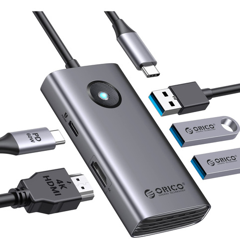 – El ORICO 5-IN-1 USB C Hub tiene una carcasa de aleación de aluminio con proceso anodizado, delicada y texturizada.