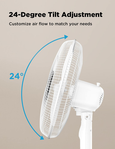 El panel de operación frontal y el control remoto brindan un manejo completo y personalizado del ventilador. Su altura ajustable entre 3.5 y 4 pies y la cabeza inclinable permiten dirigir el flujo de aire según sea necesario.