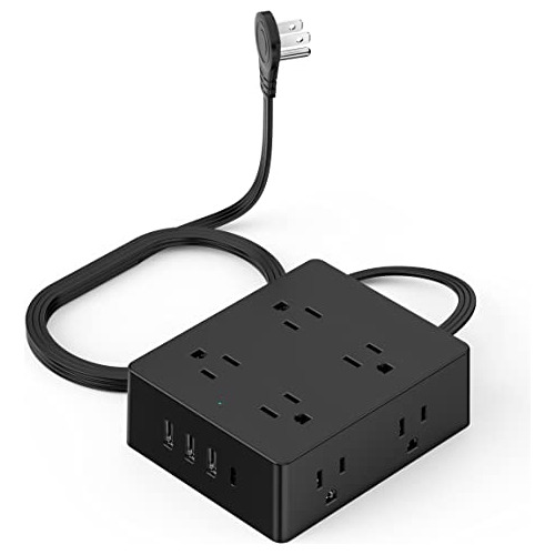 Regleta de alimentación 12 en 1 con USB-C: la regleta de alimentación de múltiples salidas tiene 8 salidas de CA, 3 puertos USB y 1 puerto USB C para cargar una variedad de dispositivos simultáneamente.