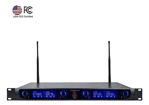 El Sistema de Micrófono Inalámbrico UHF Profesional de Sound Town ofrece una experiencia de sonido superior sin interferencias. Este sistema opera en una frecuencia UHF (MHz) que es menos susceptible a interferencias de otros equipos en comparación con un sistema VHF. Cuenta con 4 frecuencias fijas para una mayor estabilidad y cumple con las últimas regulaciones de la FCC.