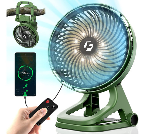 Ventilador de camping portátil con abrazadera colosal, ventilador recargable de 8 pulgadas de mAh que funciona hasta 65 horas con LED y control remoto, ventilador de clip para exteriores, viajes, taller, emergencia de huracanes.
