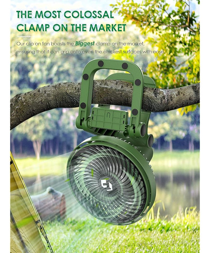 El diseño de clip más reciente: nuestros ingenieros diseñaron esta abrazadera para ventilador de campamento pensando en la durabilidad y comodidad. Está hecho de materiales de alta calidad que pueden soportar la prueba del tiempo y entornos exteriores hostiles. La abrazadera también es totalmente ajustable, por lo que puedes personalizar el ángulo y la dirección del flujo de aire a tu gusto.