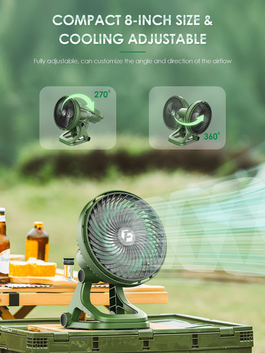 Fuerte flujo de aire de 8 pulgadas: sumérgete en un mundo de comodidad refrescante con el potente flujo de aire de nuestro ventilador portátil de 8 pulgadas con tamaño compacto y diseño ligero fácil de empacar y llevar donde quiera que vayas. Prepárate para ser arrastrado por el gran flujo de aire de nuestro ventilador, es como una refrescante brisa oceánica que eliminará la sensación de calor.