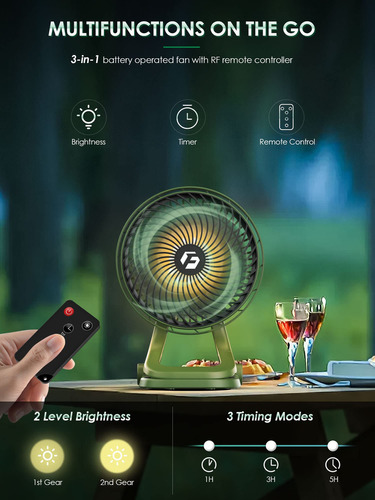 Ventilador portátil multifuncional: eleva tu experiencia de refrigeración al siguiente nivel con las características avanzadas de nuestro ventilador. Con 2 niveles de brillo, temporizador de 135H y un control remoto de RF, puedes personalizar tu refrigeración lo último en conveniencia, lo que te permite ajustar sin esfuerzo los ajustes desde el otro lado de la habitación.