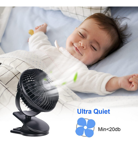 Fuerte flujo de aire y bajo nivel de ruido: el ventilador personal cuenta con 3 ajustes de velocidad de viento ajustables, desde una brisa suave hasta viento fuerte. Motor mejorado integrado para velocidades de funcionamiento más rápidas rpmrpm. Este ventilador de clip silencioso está diseñado para ser un 25 más silencioso con la hoja optimizada. Emite un buen movimiento de aire, pero tan tranquilo que tu bebé no se asustará y se dormirá muy rápidamente.