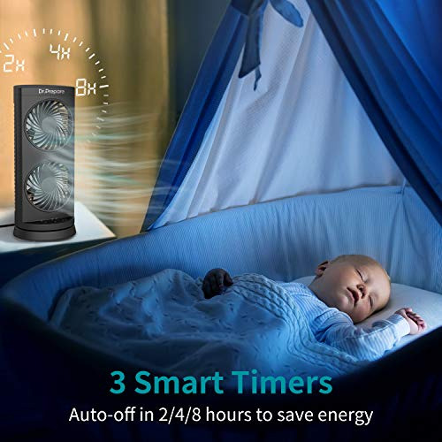 Además, el Ventilador Oscilante Dr. Prepare Tower Fan cuenta con tres temporizadores de apagado automático: 2H, 4H y 8H. Esto permite que el ventilador circule aire bochornoso durante la noche para una mejor ventilación y una frescura duradera.
