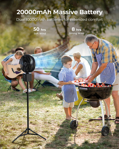 Ventilador recargable oscilante de mAh con control remoto, con una duración de 50 horas. Este ventilador portátil de 10 pulgadas viene con un trípode extensible, proporcionando un flujo de aire fuerte. Cuenta con un temporizador, 7 velocidades y es ideal como ventilador de pedestal al aire libre para campamento en casa huracán.