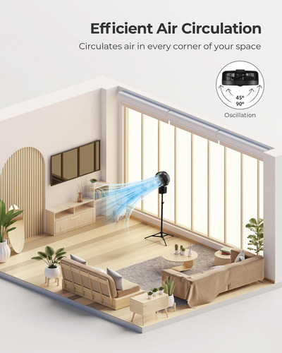 Temporizador: Puedes ajustar el temporizador para apagar automáticamente el ventilador después de algún tiempo. Se puede configurar durante 1, 2, 4 u 8 horas, por lo que no hay necesidad de despertar solo para apagar el ventilador. Además, produce menos de 60 dB de ruido incluso a la velocidad más alta, asegurando que disfrutes de un sueño profundo.