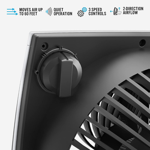 -Rendimiento óptimo: cuchillas de tono profundo emparejadas con un conducto de aire cerrado con cono guía de entrada y parrilla en espiral para mover el aire hasta 60 pies.