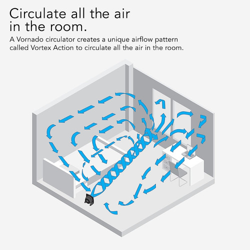 El Ventilador Vornado 573 De Mesa 10 Pulgadas Compacto Color De La Estructura Negro Diámetro 10 Cm es un circulador de aire de alto rendimiento que utiliza la tecnología Vortex exclusiva de Vornado. Este dispositivo es capaz de mover el aire hasta 60 pies, proporcionando una circulación de aire eficaz en toda la habitación.