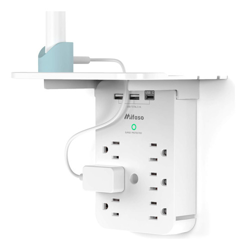 Wall Outlet Extender with Surge Protector, 6 AC Outlets, Sh