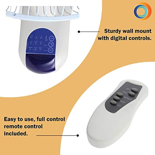Este soporte de pared es de color blanco, lo que le da un aspecto limpio y moderno, perfecto para cualquier decoración. Incluye una rejilla de seguridad para proteger el ventilador y garantizar su funcionamiento seguro.